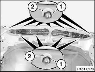 Release nuts (1) with washers (2).