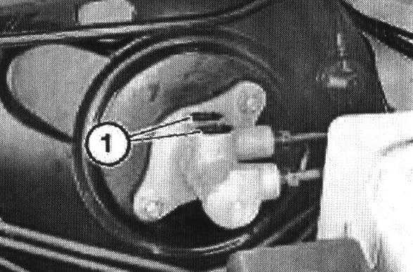 Disconnect supply hose (2) of clutch hydraulic system, position pipe so fluid does not drain from hose.