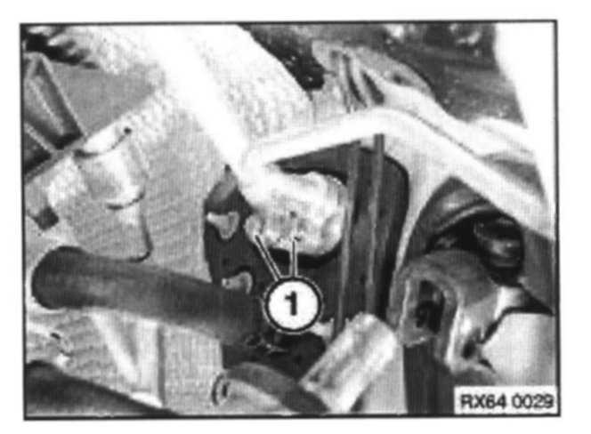 Remove bolts (1) and release air conditioning pipes.