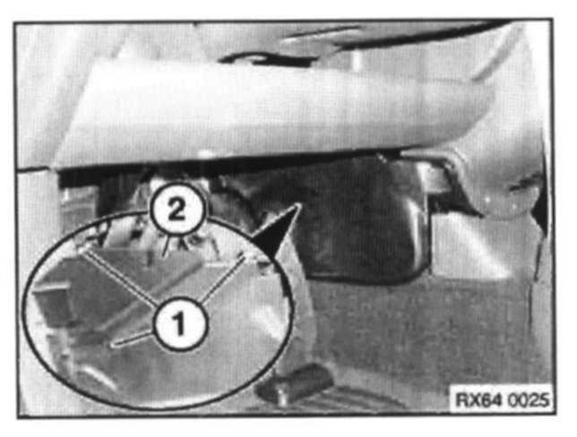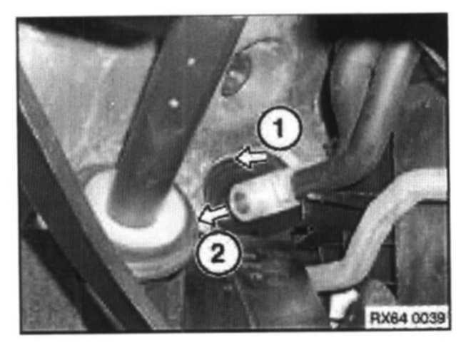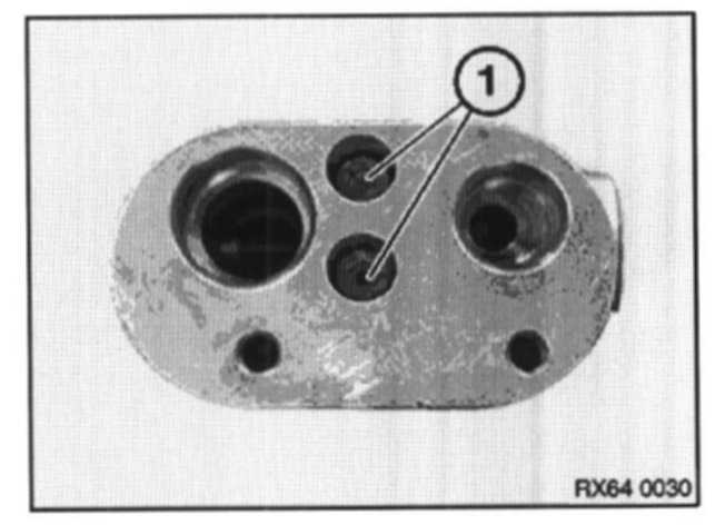 Release expansion valve from evaporator pipes in direction of arrow (1) towards engine compartment and remove expansion valve in direction of arrow 2.