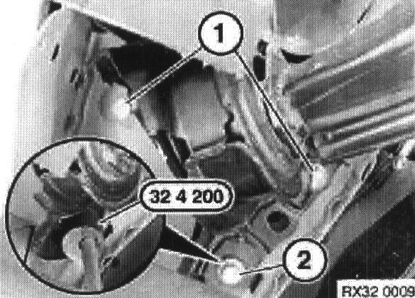 Attach special tool 32 4 200 to screw (2). Turn special tool and adjust toe-in to specified value.