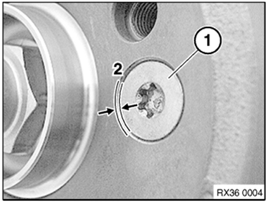 On no account must the retaining screw ( 1 ) protrude over contact surface ( 2 ) between brake disk and disk wheel.