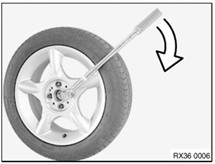 - If several wheels are removed simultaneously, mark with a piece of chalk on each tyre the axle and side on which the corresponding wheel is fitted.