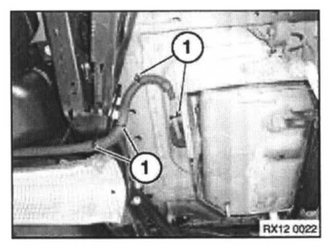 Remove scrivets (4) securing heat shield to rear bumper carrier.
