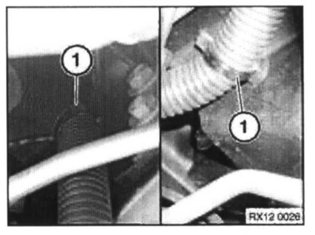 Remove nuts (2) securing left hand and right hand exhaust mounting brackets to body.