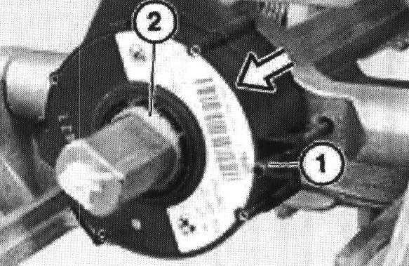Disconnect harness and remove steering angle sensor in direction shown.