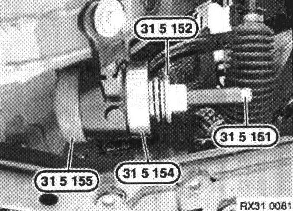 Press rubber mount out of bracket using special tool 31 5 150 as shown.