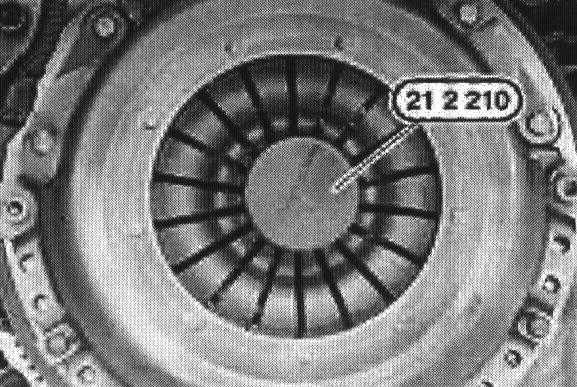 Note: During the tightening process of the pressure plate, rotate special tool 21 2 210 , this will help to centralize the clutch disk.
