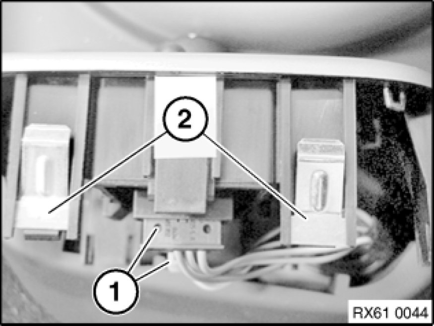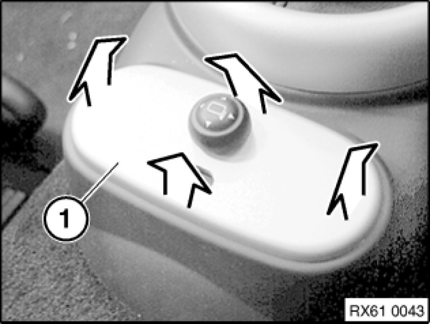 Detach plug connector (1) and remove mirror adjustment switch.