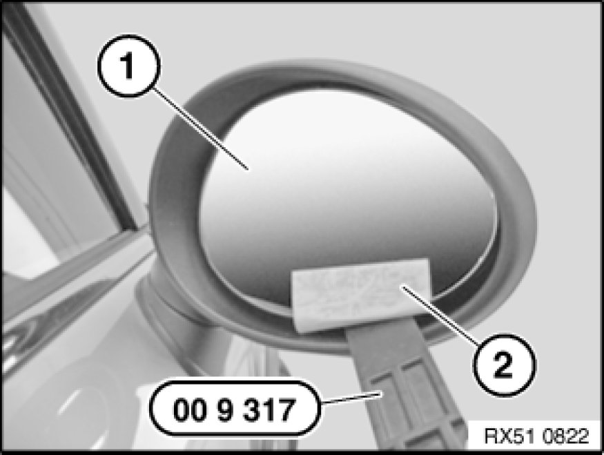 Unclip mirror glass (1) all round with special tool 00 9 317 00 9 317 Trim Panel Wedge.