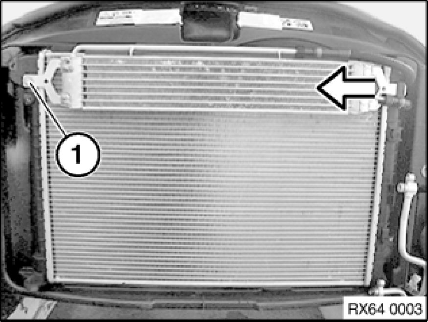 Release radiator from mounting in direction of arrow.