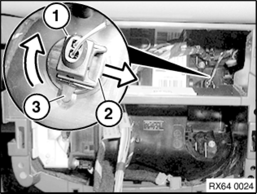 Turn temperature sensor for heater (1) clockwise (approx. 45°) and pull out.