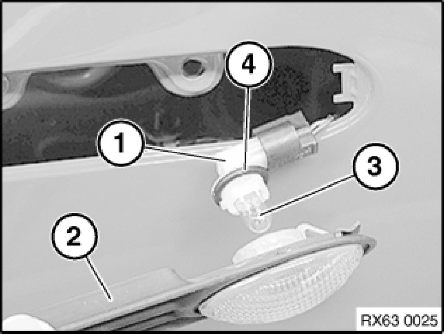 Remove bulb for auxiliary turn signal light (3) from bulb holder (1).