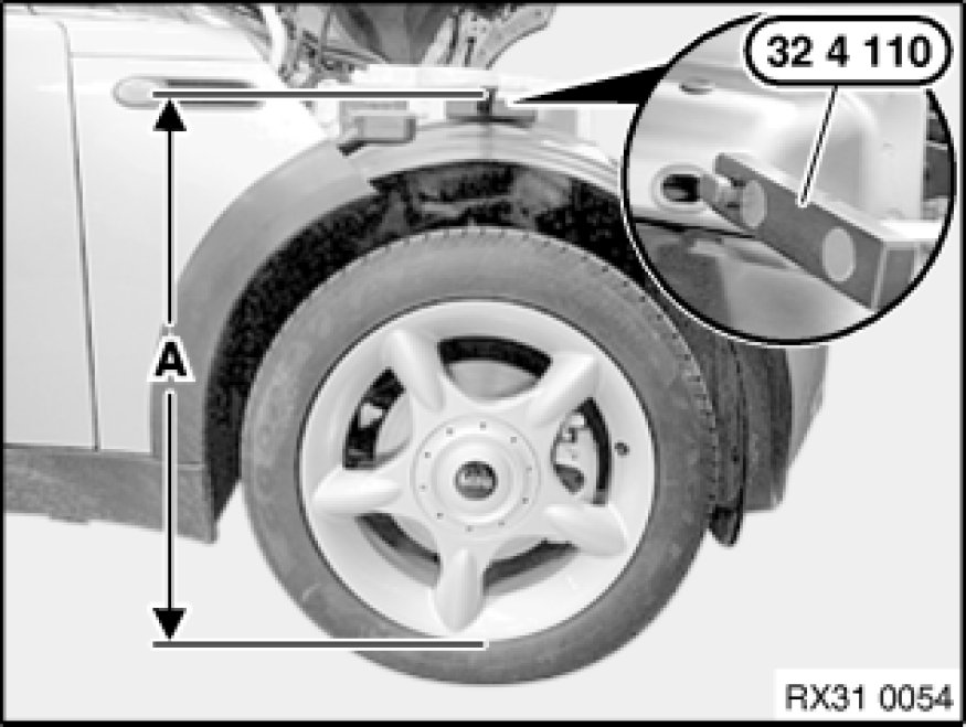 Attach tape measure to rim flange at bottom middle and measure to lower edge of special tool 32 4 110 32 4 110 Adapter.