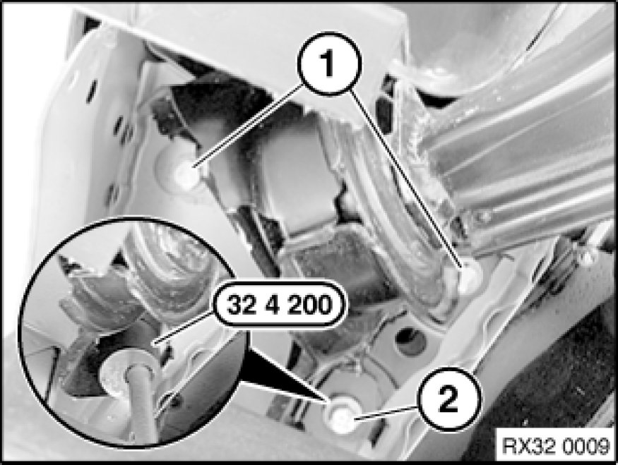Loosen bolts (1) and (2) by approx. 1.5 turns at mounting bracket.