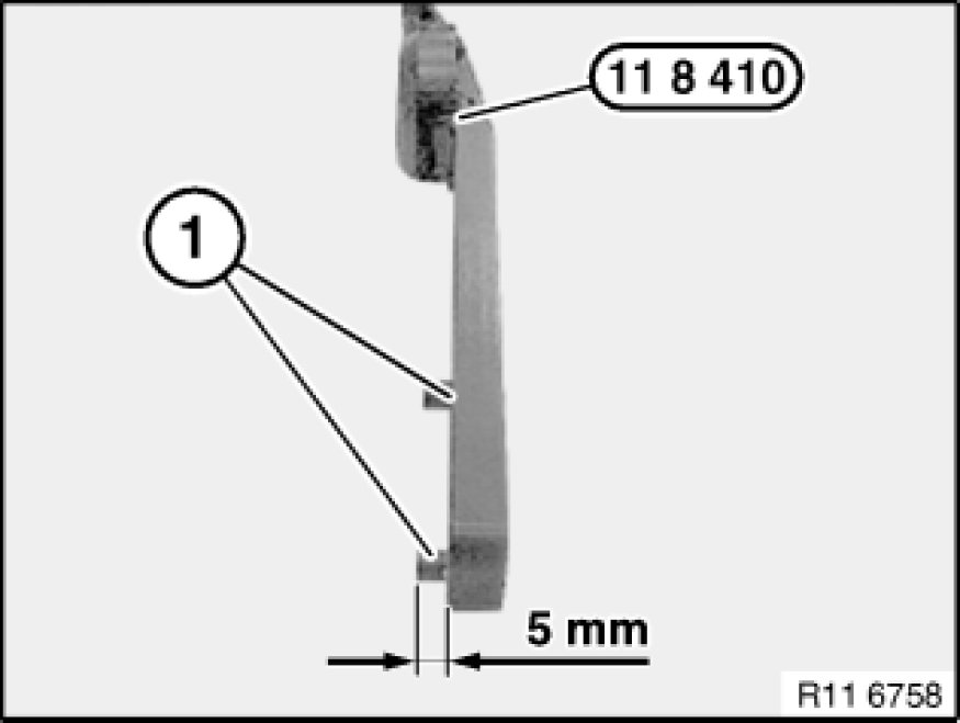 Modify special tool 11 8 410 11 8 410 Lever at studs (1) to 5 mm.