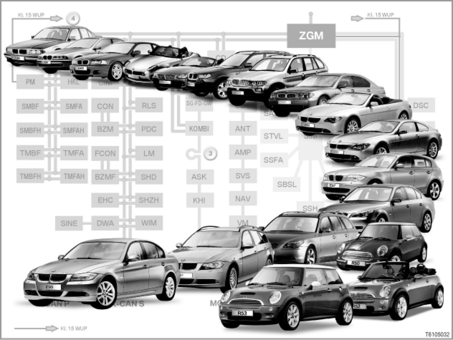 - E90, E91, E92, E93 [system overview ...] (3-Series, start of series production 2005)