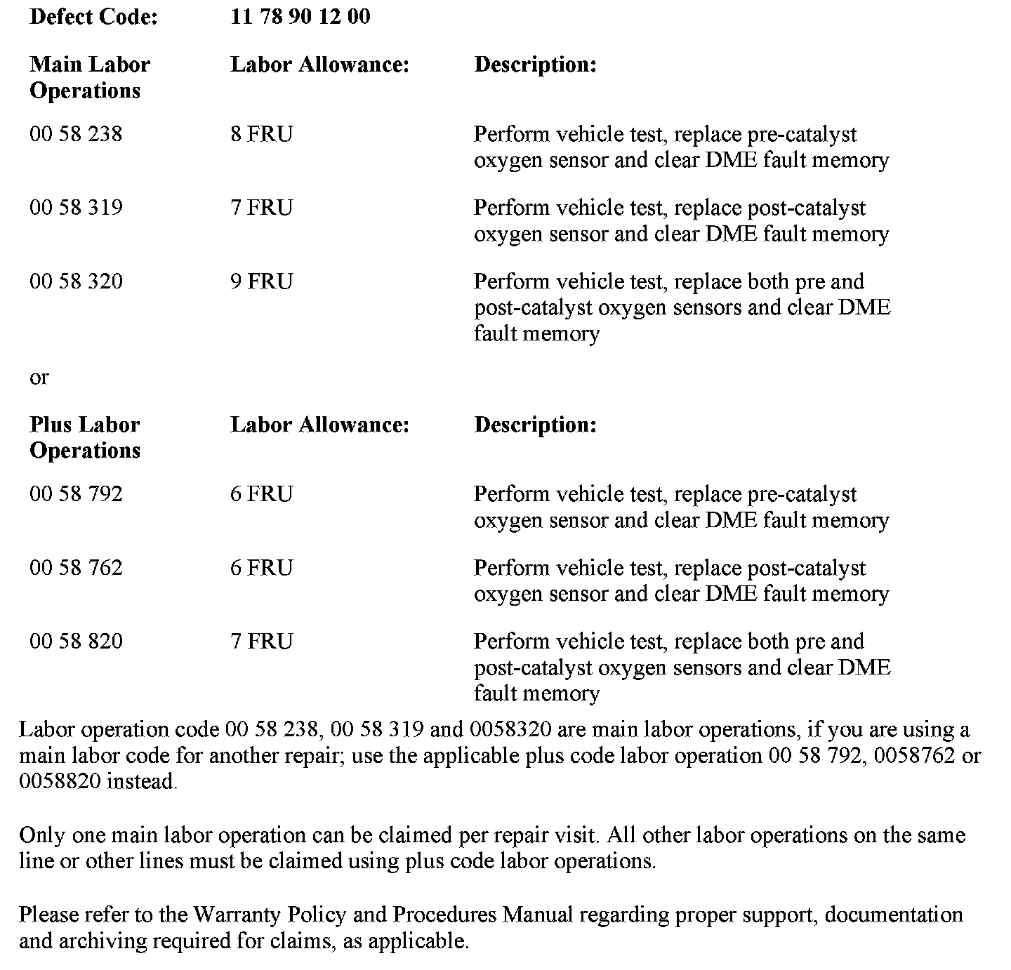 Emissions - Special Limited O2 Sensor Emissions Warranty