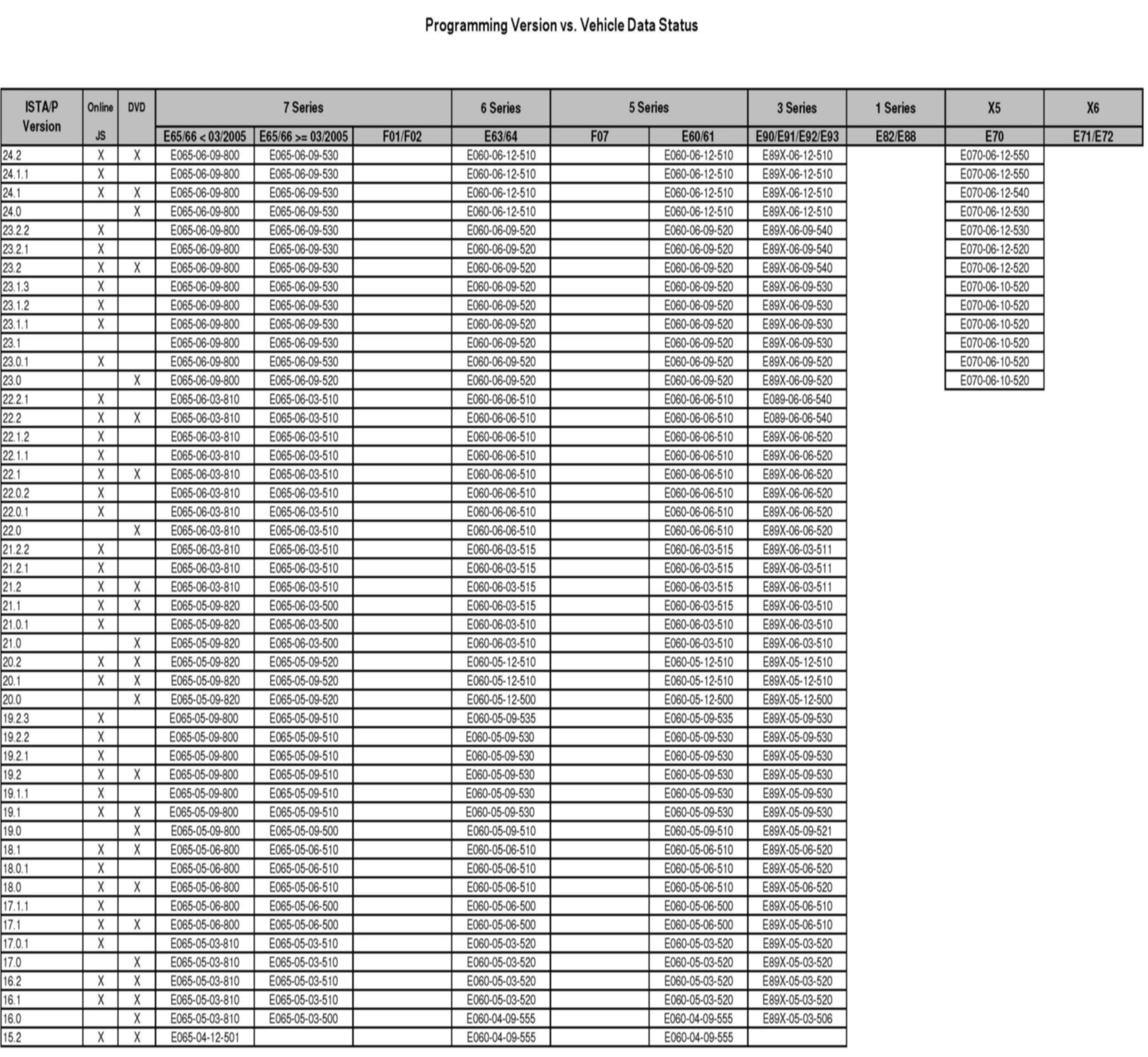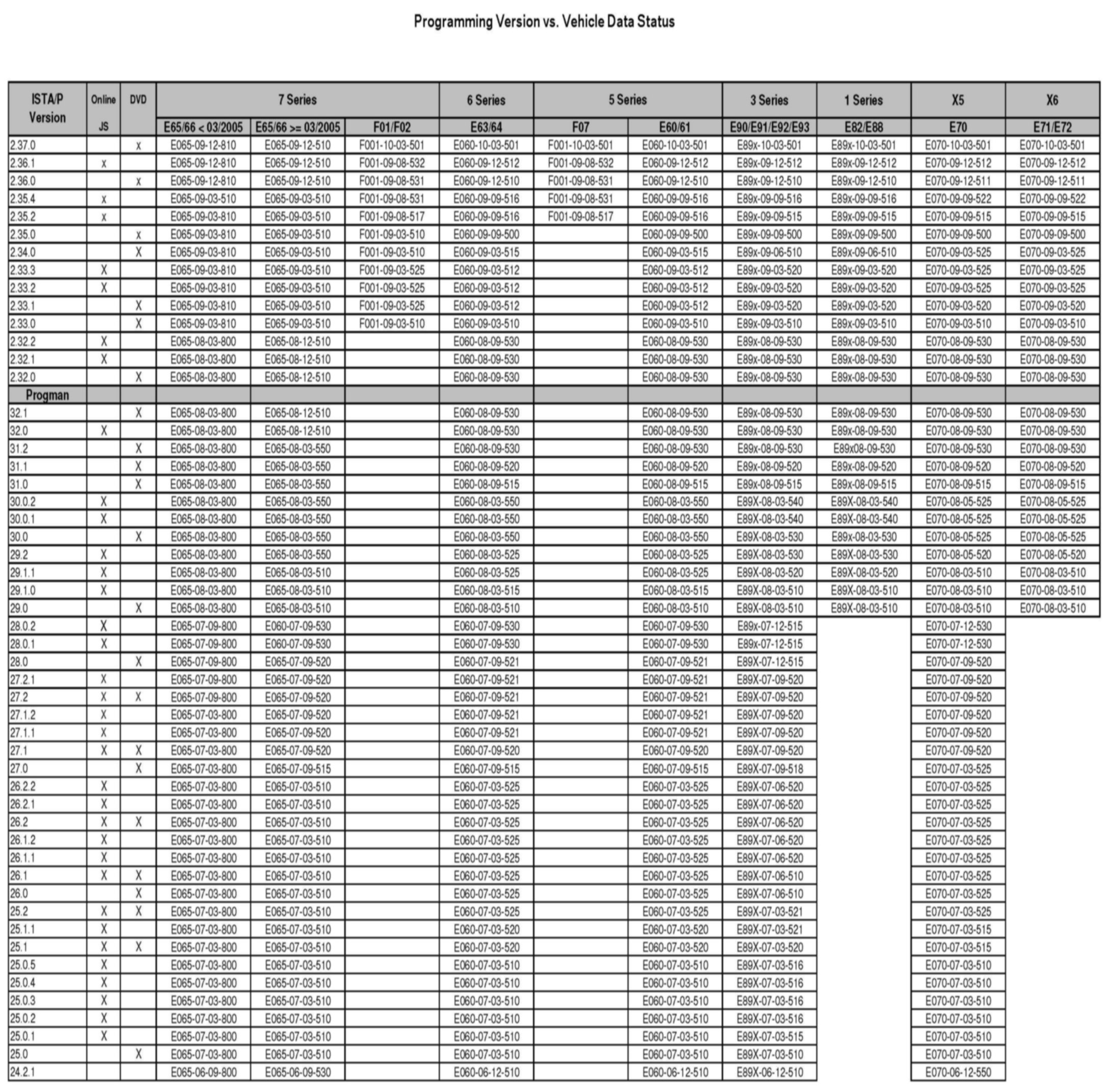 To check the Vehicle Data Status against the ISTA/P version, refer to the [NEW] attachment.