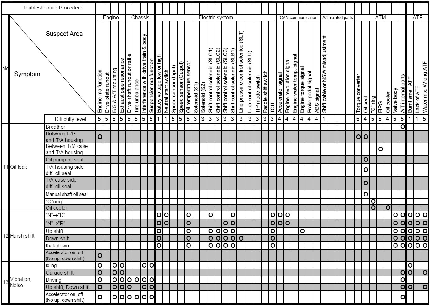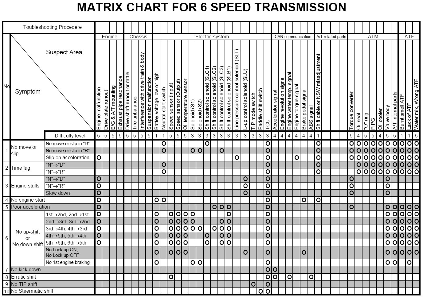 Matrix Chart For 6 Speed Transmission (GA6F21WA)