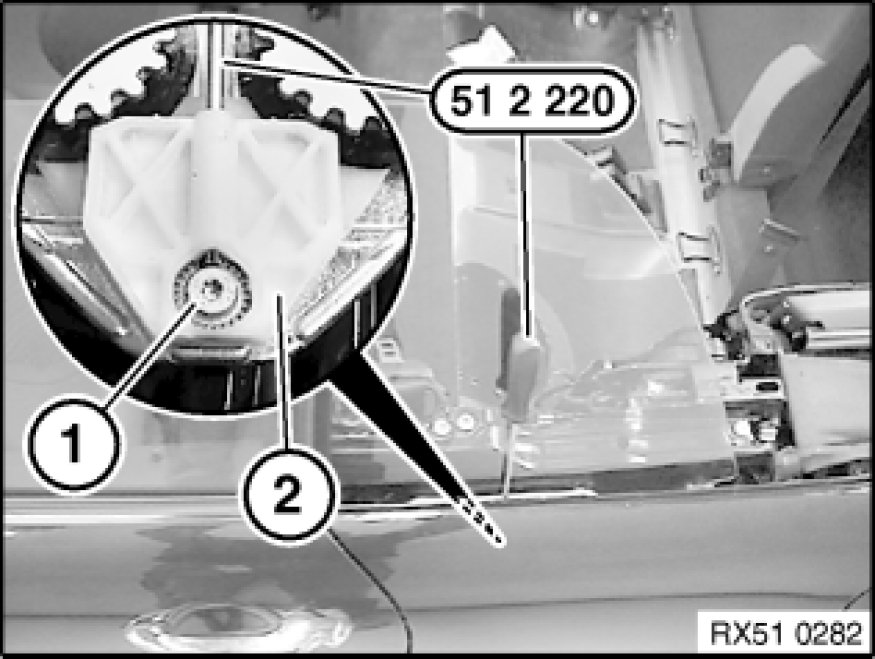 Adjust pretension (D) by turning toothed knurled nut (1) on mounting (2) with special tool 51 2 220 51 2 220 Torx.