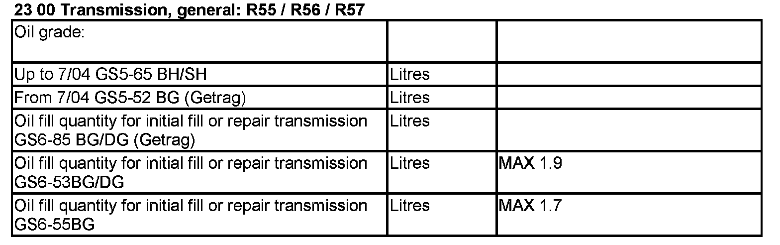 23 00 Transmission, general: R55 / R56 / R57