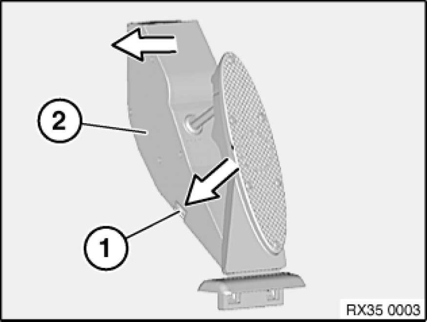 Press retaining tab (1) downwards and slide accelerator pedal module (2) in direction of arrow off adapter plate and remove.