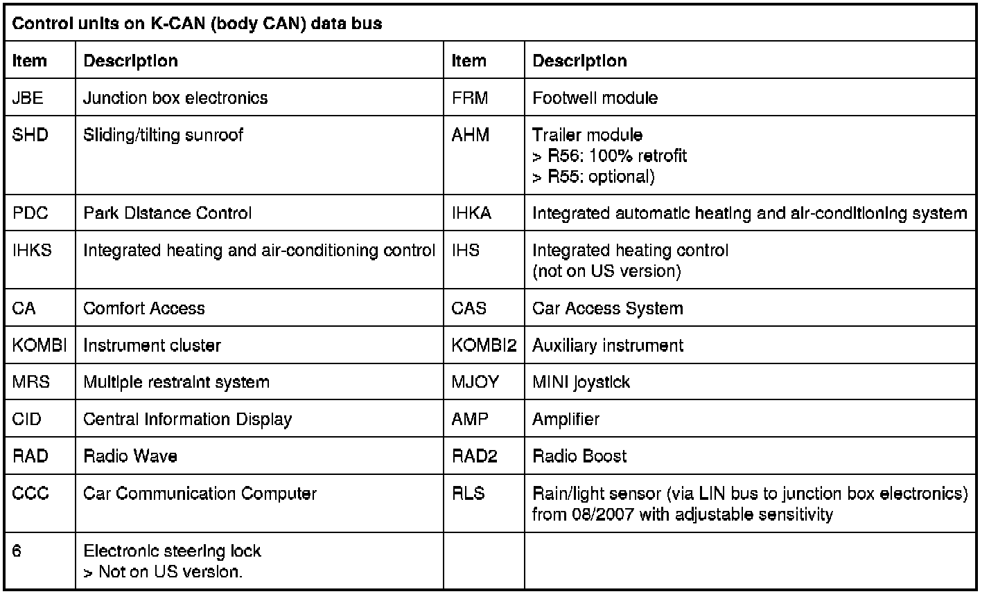 The R56 is equipped with an advanced development of the CAS from the BMW 3-Series. This means the following components are also installed.