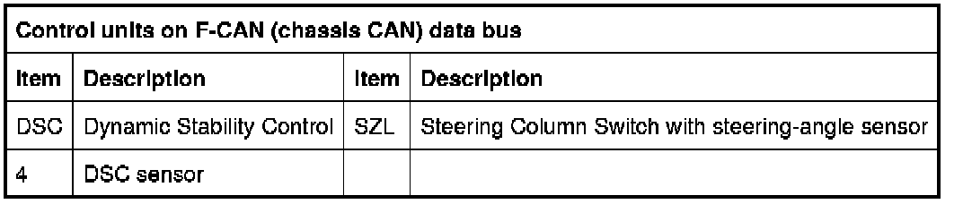 On vehicles with Dynamic Stability Control (DSC) there is a steering angle sensor in the SZL. The Steering Column Switch is then connected to the F-CAN (chassis CAN) and to the PT-CAN (powertrain CAN).