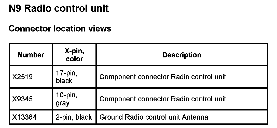 N9 Radio Control Unit (Stereo System):