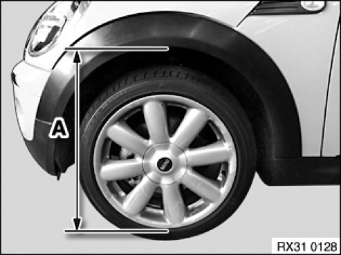 Attach tape measure to rim flange at bottom middle and measure to wheel arch trim.