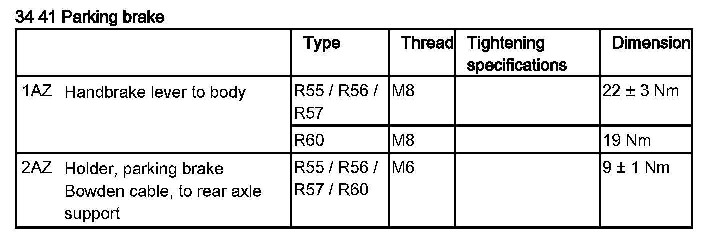 Parking Brake System: Specifications