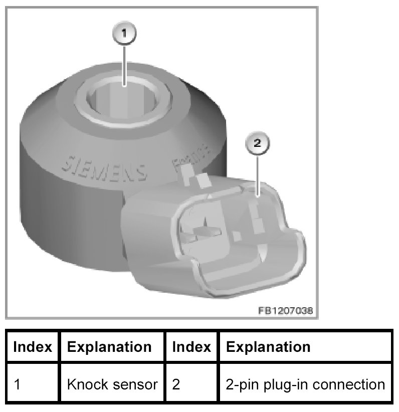 The knock sensor detects the combustion knock. If the knocking persists for a longer period, the pressure waves and thermal load can cause mechanical damage on the cylinder head gasket, on the piston and in the area of the valves.