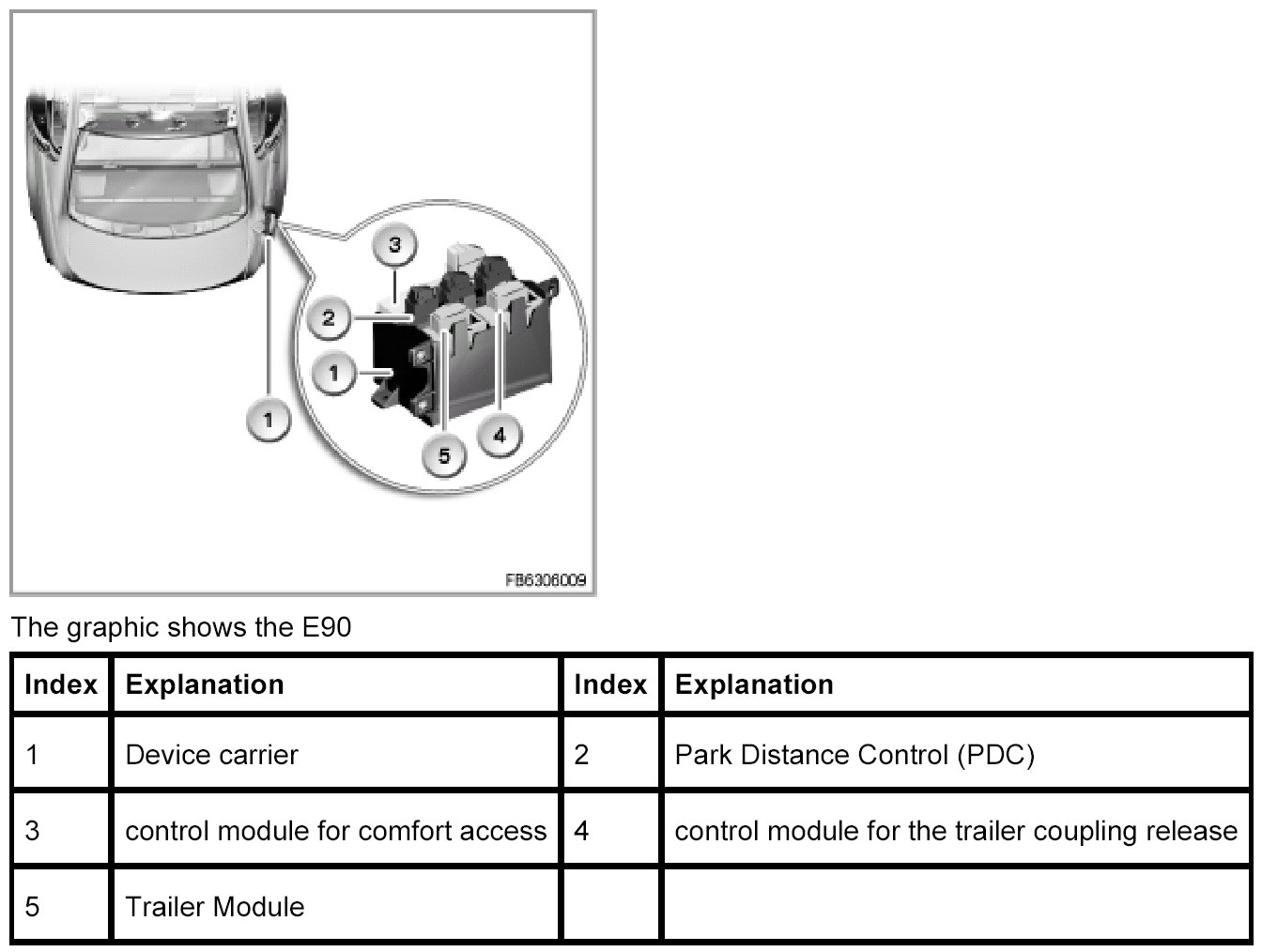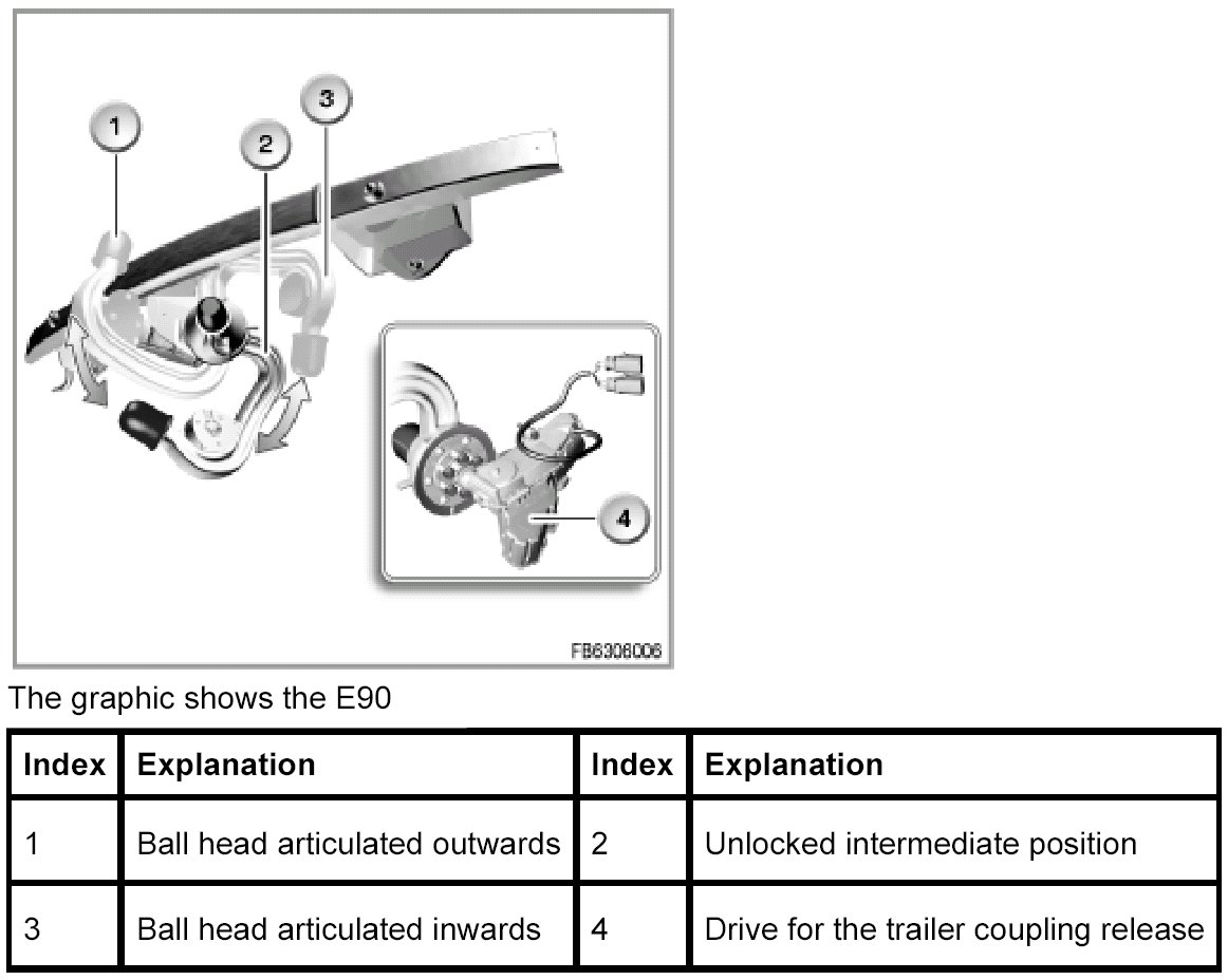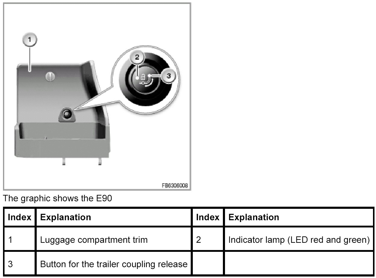 - The control module for the trailer coupling release in the E9x with the associated electrical folding trailer coupling and