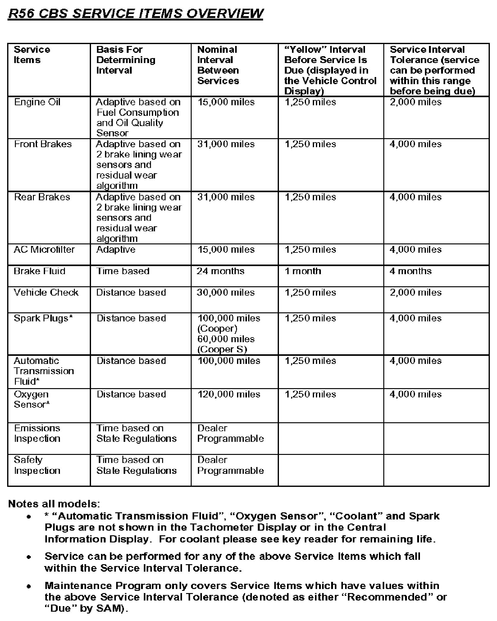 Condition Based Service (CBS) System Description and Operation