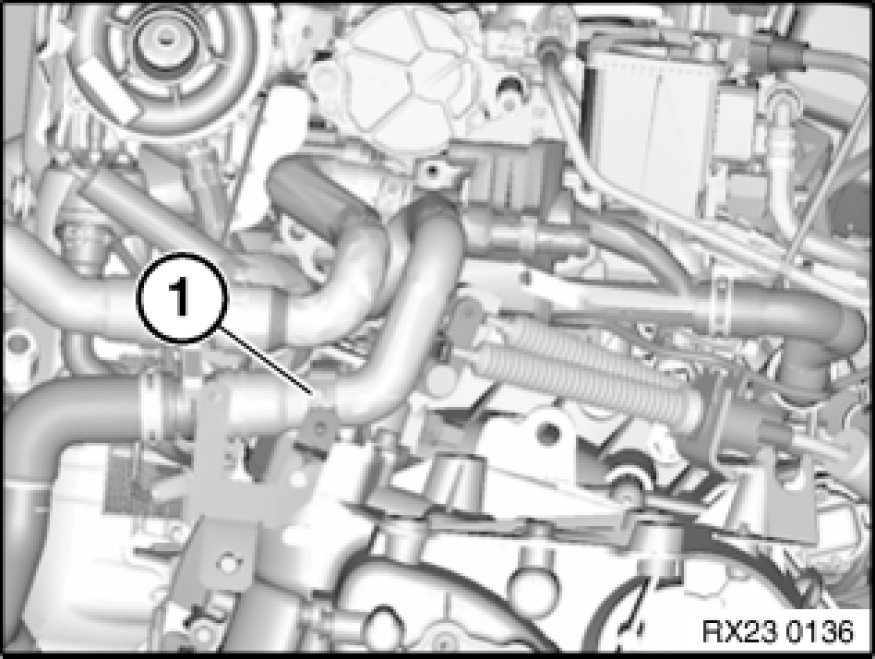 Remove coolant hose from holder (1).