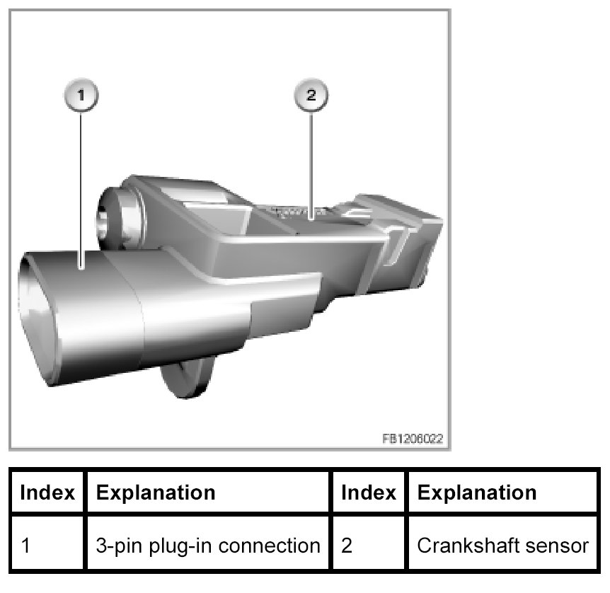 The crankshaft sensor picks up the position of the crankshaft by means of a sensor wheel bolted onto the crankshaft. The DME uses this to calculate the engine speed. The crankshaft sensor is necessary for the fully sequential injection system (fuel injection takes place individually for each cylinder at the specific point of ignition).
