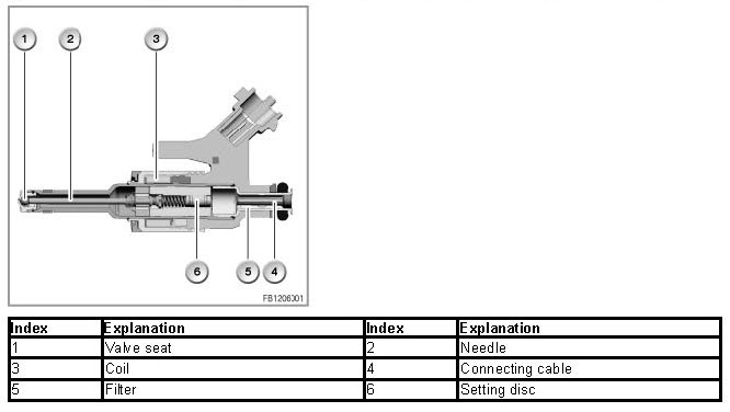 The high-pressure fuel valve is located on the side of the cylinder. In the case of fully sequential fuel injection, each high-pressure fuel valve is activated by the DME control unit via a separate output stage. Here, the fuel injection time of each cylinder is adapted to the operating status (speed, load and engine temperature).