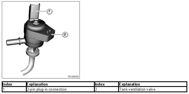The tank vent valve is closed when in a flow-free state. This means that with the engine at a standstill no fuel vapours from the activated carbon filter enter the intake pipe.