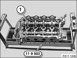 Place cylinder head (1) on special tool 11 9 000.