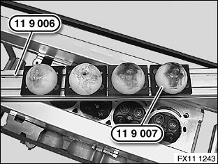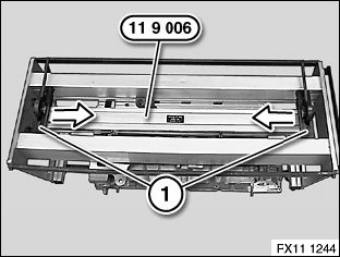 Lock eccentrics (1) on special tool 11 9 000 in direction of arrow.
