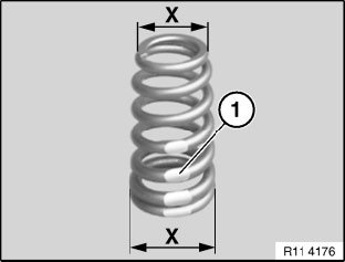 Color marking (1) is normally on lower end of valve spring.