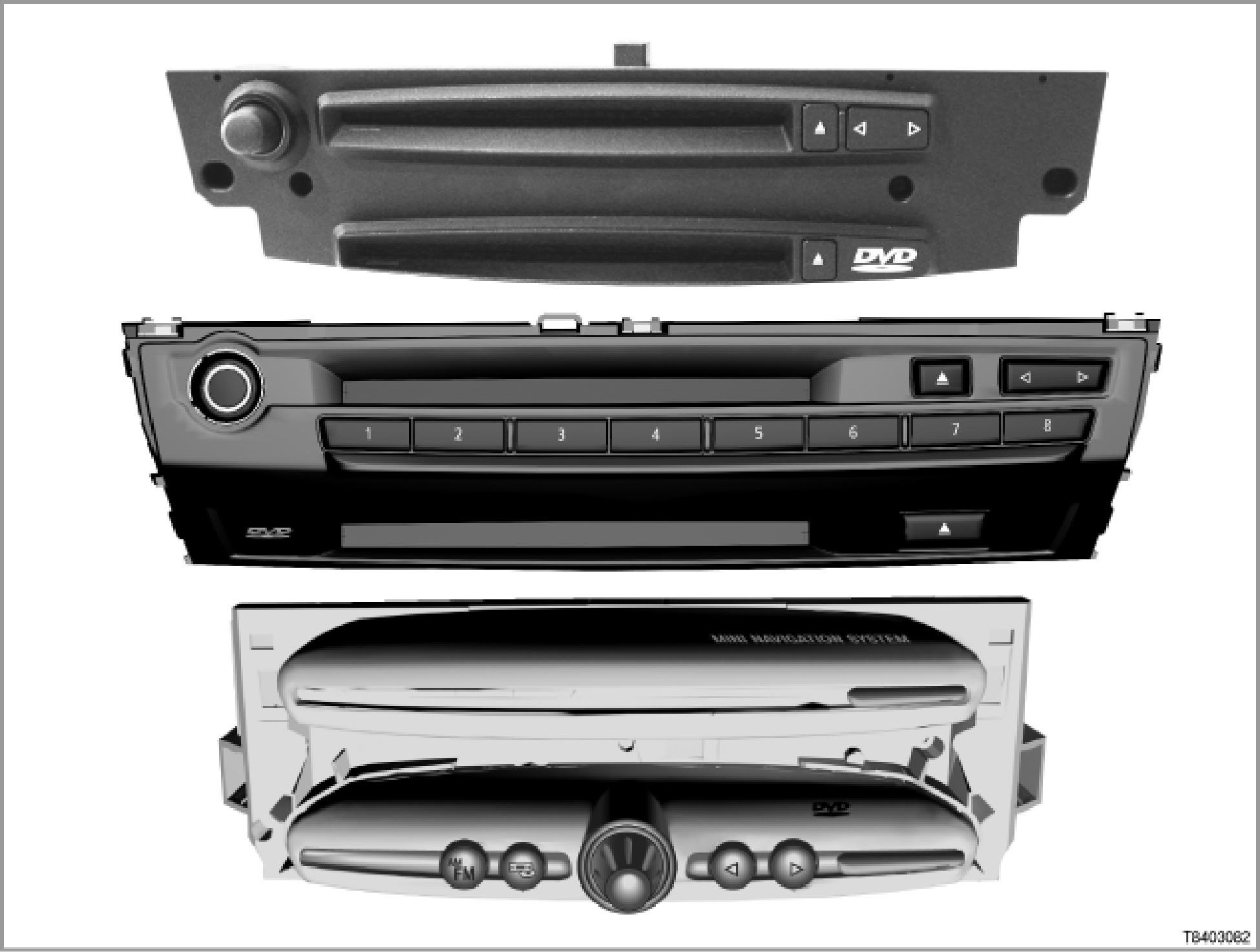The DVD drive is used for the navigation DVD. When the navigation system is not in use, the DVD drive can also be used to play audio CDs and CD-ROMs.