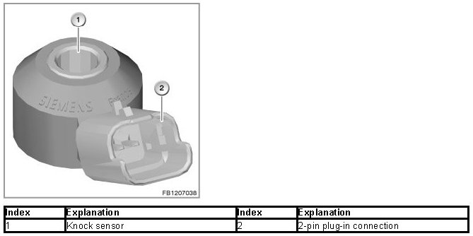 The knock sensor detects the combustion knock. If the knocking persists for a longer period, the pressure waves and thermal load can cause mechanical damage on the cylinder head gasket, on the piston and in the area of the valves.
