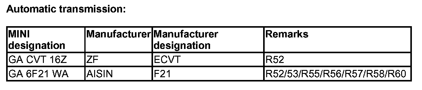 Automatic Transmission/Transaxle: Application and ID