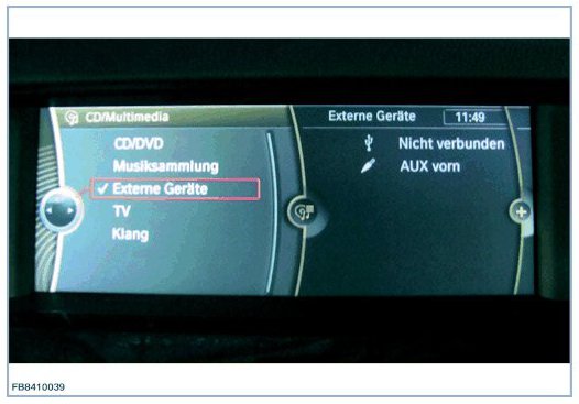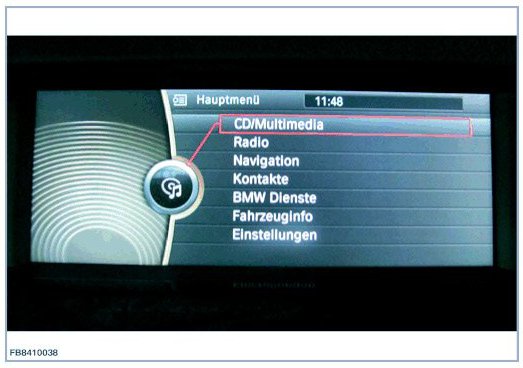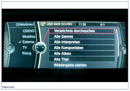 NOTE: Only perform the USB tests with the USB cable provided in the scope of delivery of the IMIB. Always perform USB tests directly at the USB connection of the vehicle. Do not use extension cables, USB hubs etc.