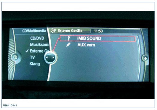 NOTE: On completion of the test, data exchange between vehicle and IMIB is terminated automatically. The IMIB is no longer shown on the display of the vehicle as IMIB SOUND.