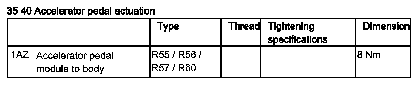 Accelerator Pedal: Specifications