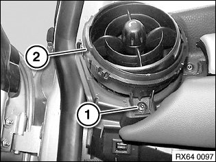 Release screw (1) and feed out fresh-air grille (2).