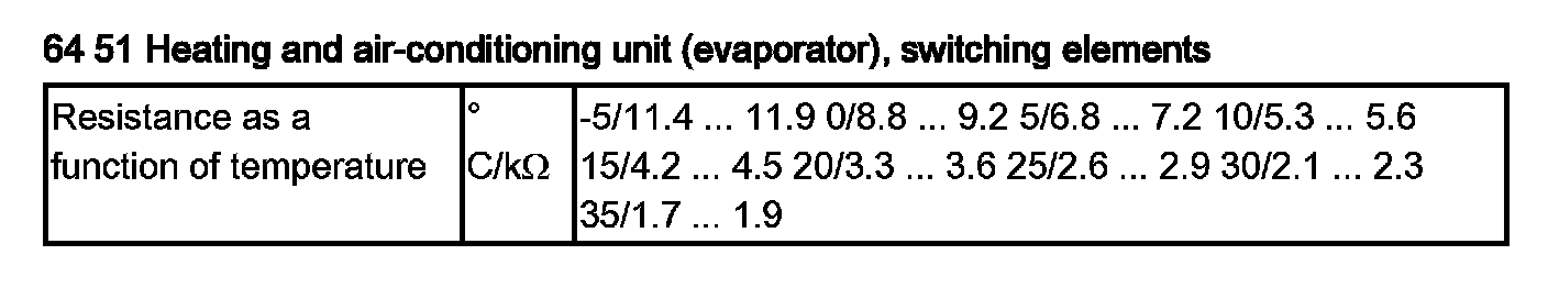 Evaporator Temperature Sensor / Switch: Specifications